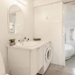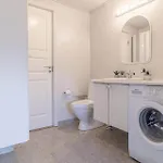 The holiday home comes with a bathroom with a hot tub and a washing machine.
